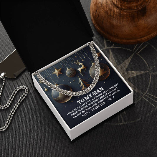 To My Man Cuban Chain Necklace, Valentine Day Presents For Man, Husband Valentine Day Gifts From Wife, Valentine Day Gifts For Husband And Wife